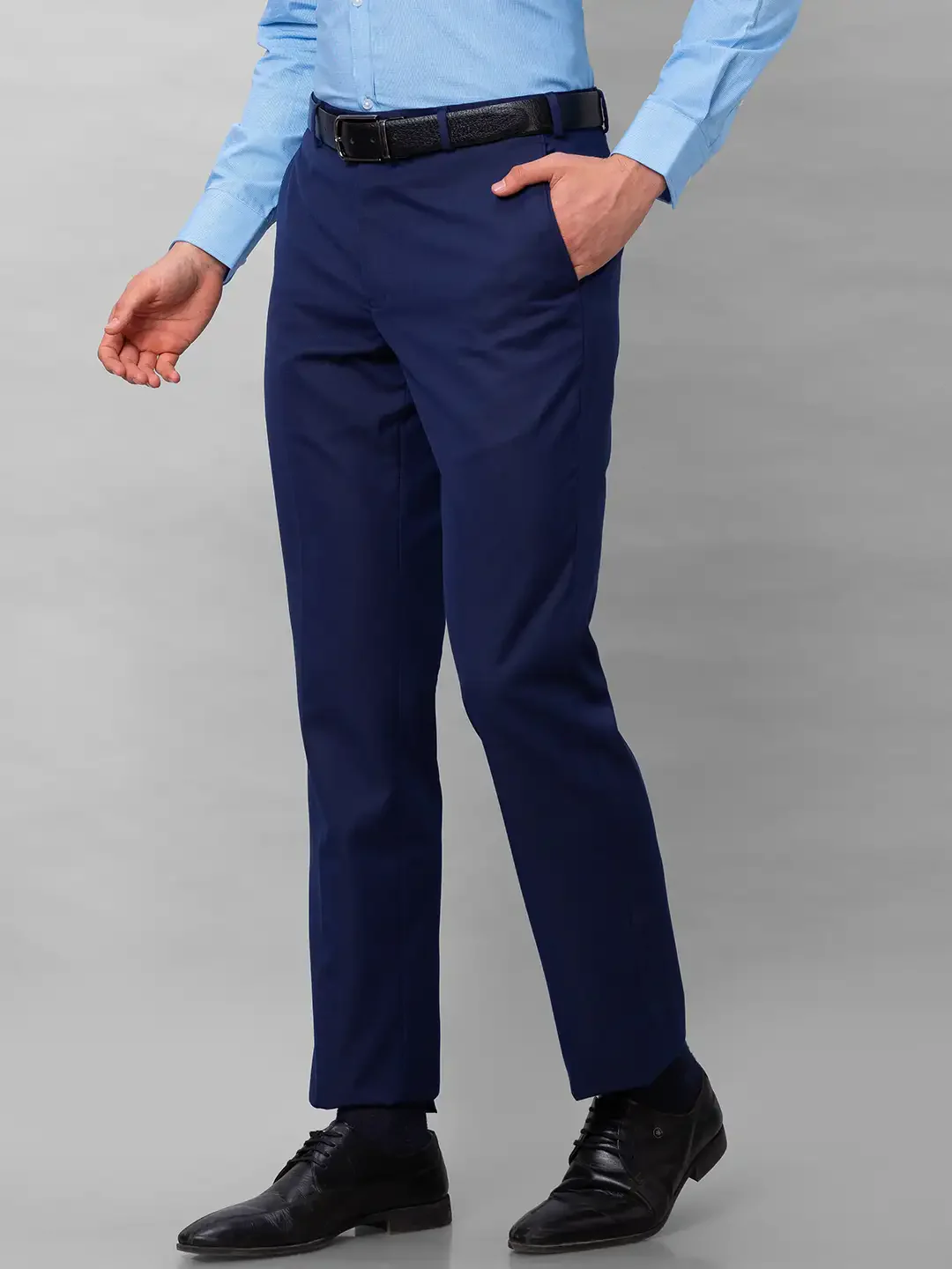 Park Avenue Men Blue Plain Smart Fit Polyester Blend Trousers