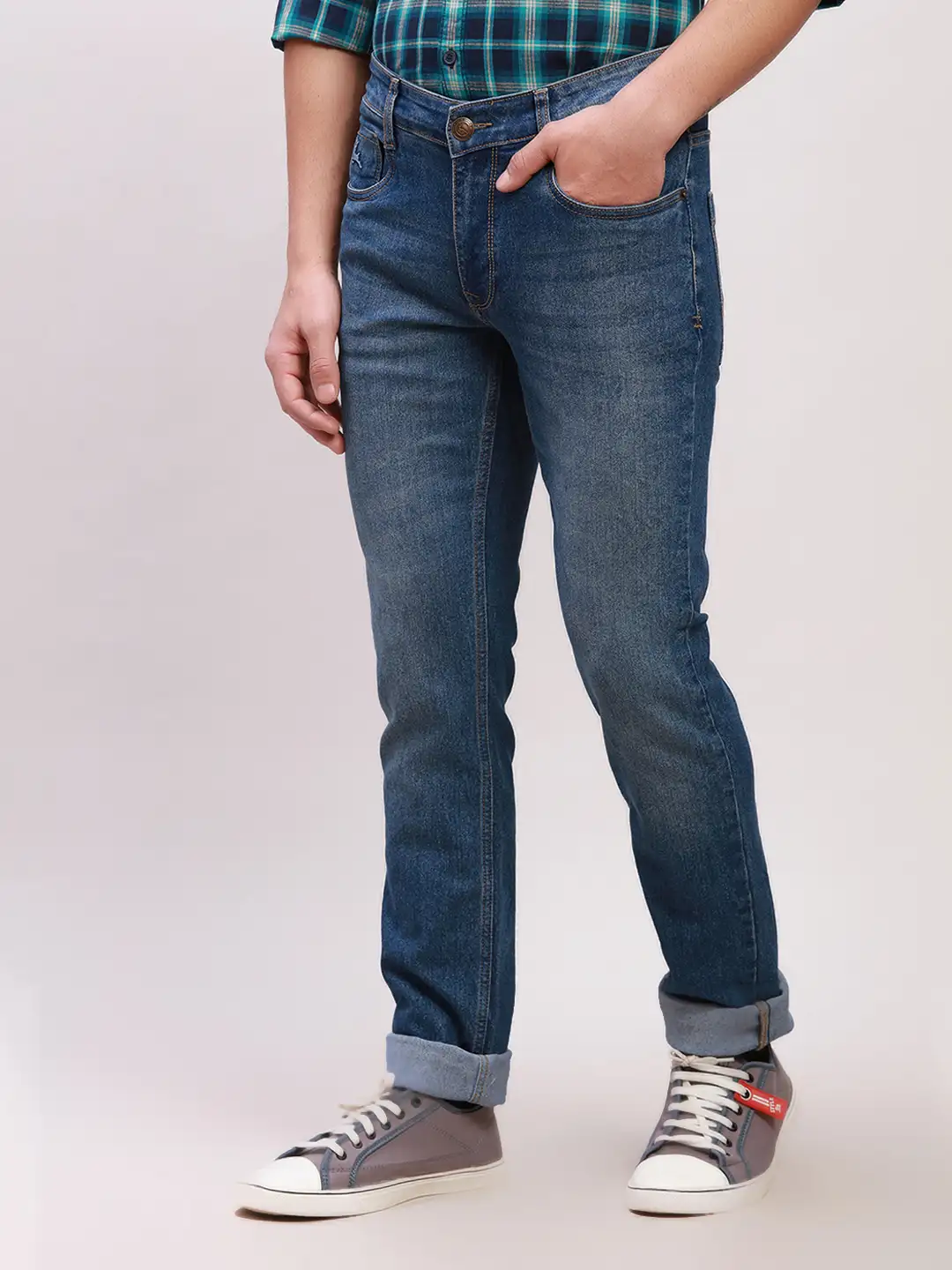 Parx Men Blue Twill Low Rise Tapered Fit Cotton Blend Jeans