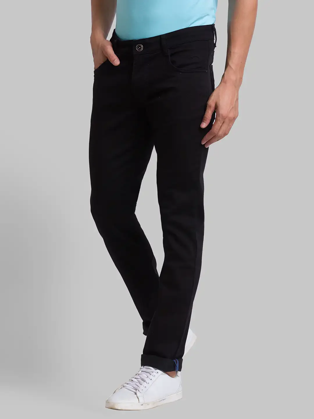 Parx Men Black Twill Low Rise Tapered Fit Cotton Blend Jeans