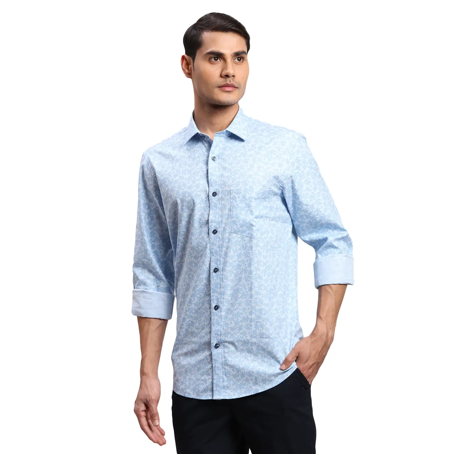 Men Blue Tailored Fit Print Cotton Full Sleeve Shirts