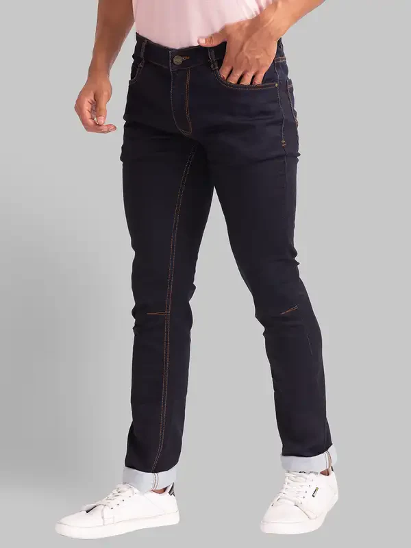 Men Blue Slim Tapered Fit Plain Cotton Blend Jeans