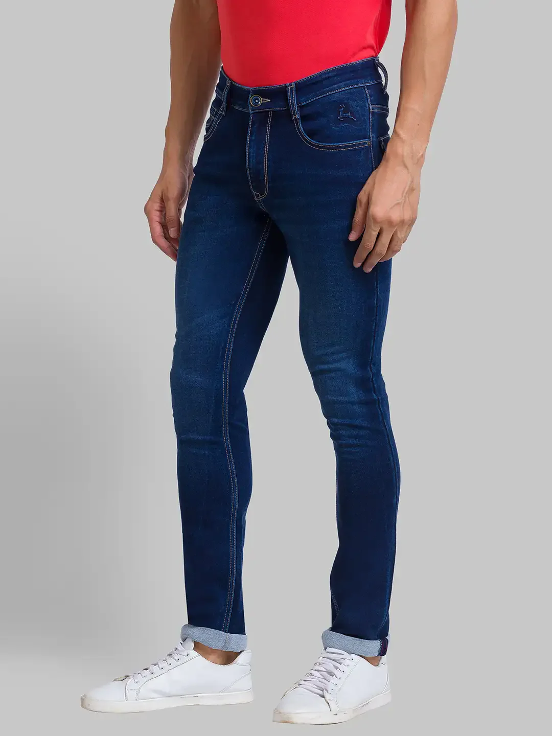 Men Blue Skinny Cropped Fit Twill Cotton Blend Jeans