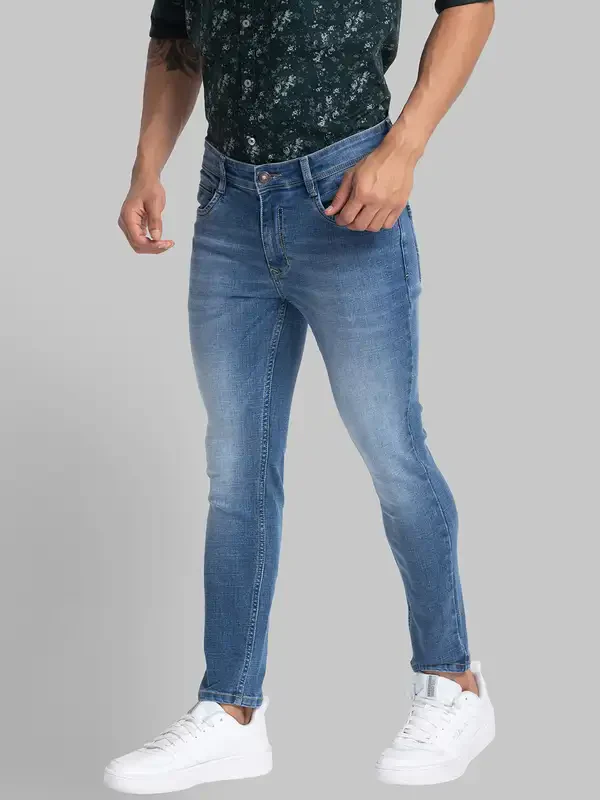 Men Blue Skinny Cropped Fit Twill Cotton Blend Jeans