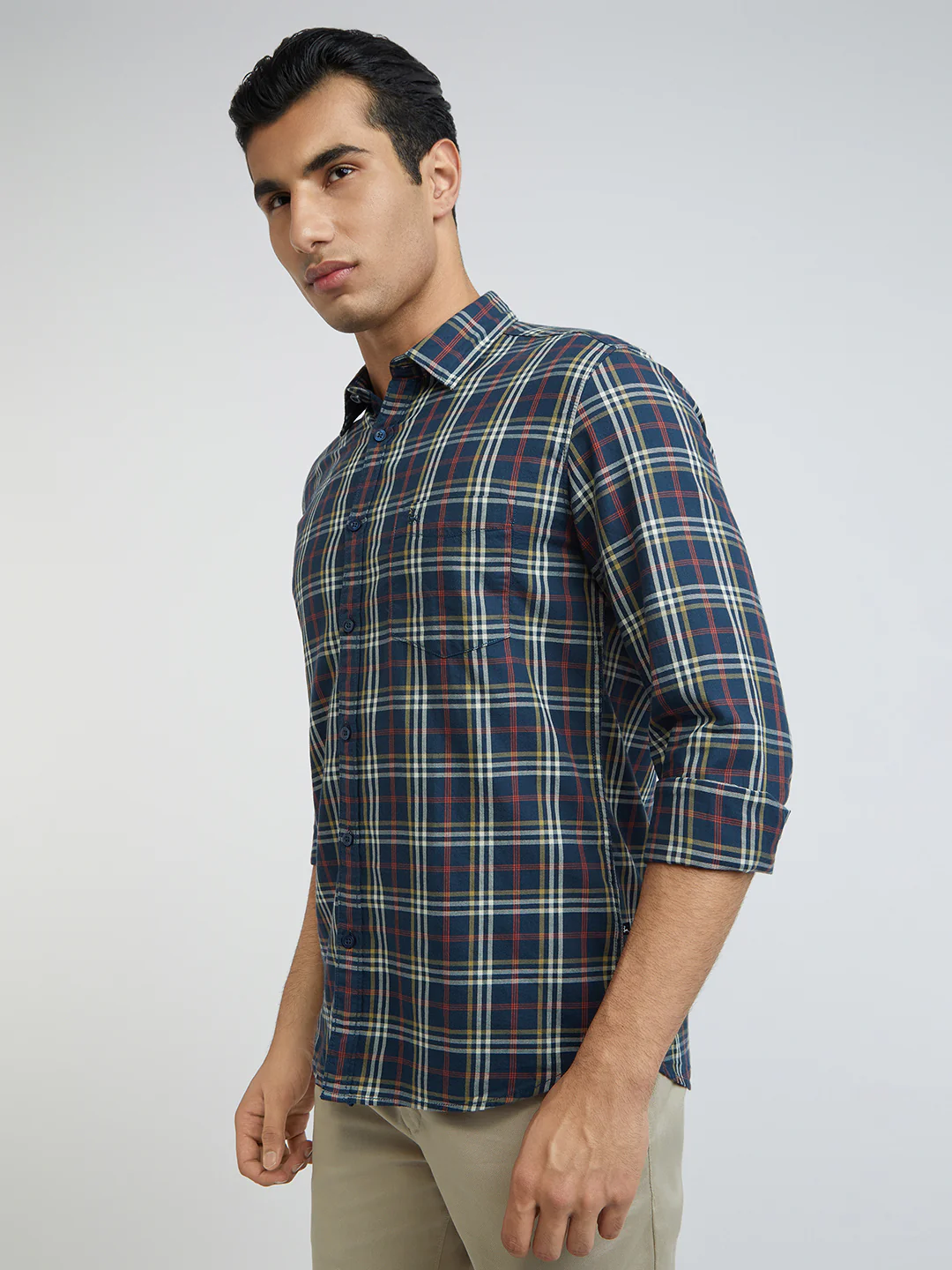 Men Blue Slim Fit Checks Cotton Full Sleeve Shirts