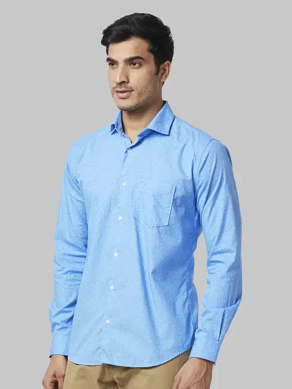 Parx Men Blue Printed Slim Fit Cotton Casual Shirt