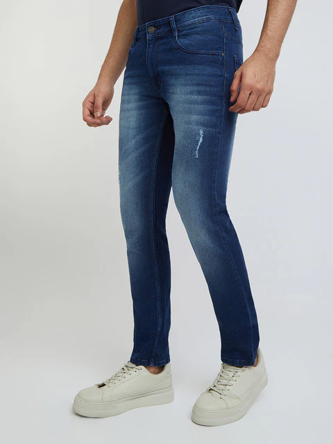 Parx Men Slim Tapered Fit Jacquard Cotton Blend Jeans