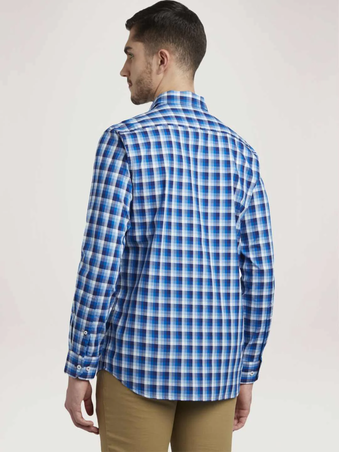 Men Blue Tailored Fit Checks Cotton Full Sleeve Shirts