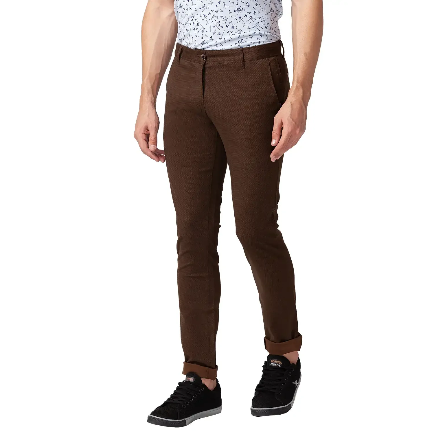 Men Brown Lrt Fit Print Cotton Blend Trouser