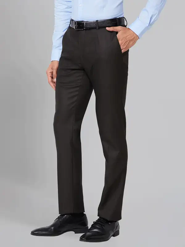 Raymond Men Brown Solid Slim Fit Polyester Blend Trousers