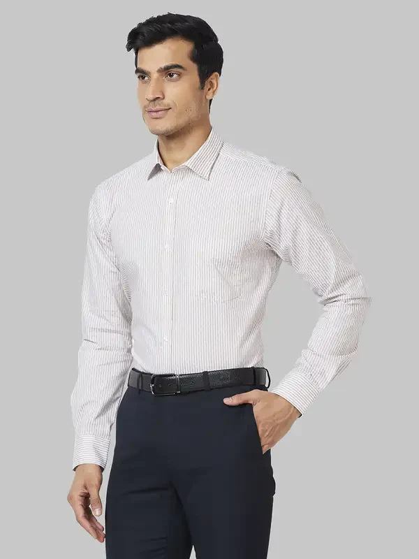Park Avenue Men Brown Striped Slim Fit Cotton Formal Shirt