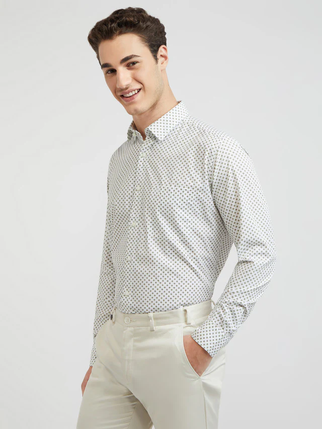 Brighten your wardrobe with the Men Green Slim Fit Print Cotton Shirt – order yours today!