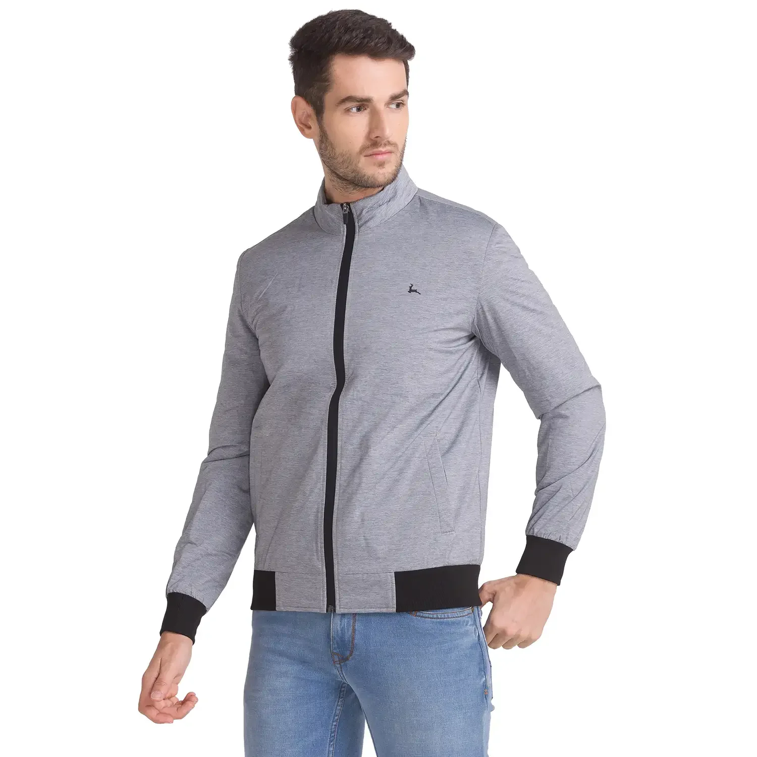 Men Grey Solid Polyester Full Sleeve Jackets