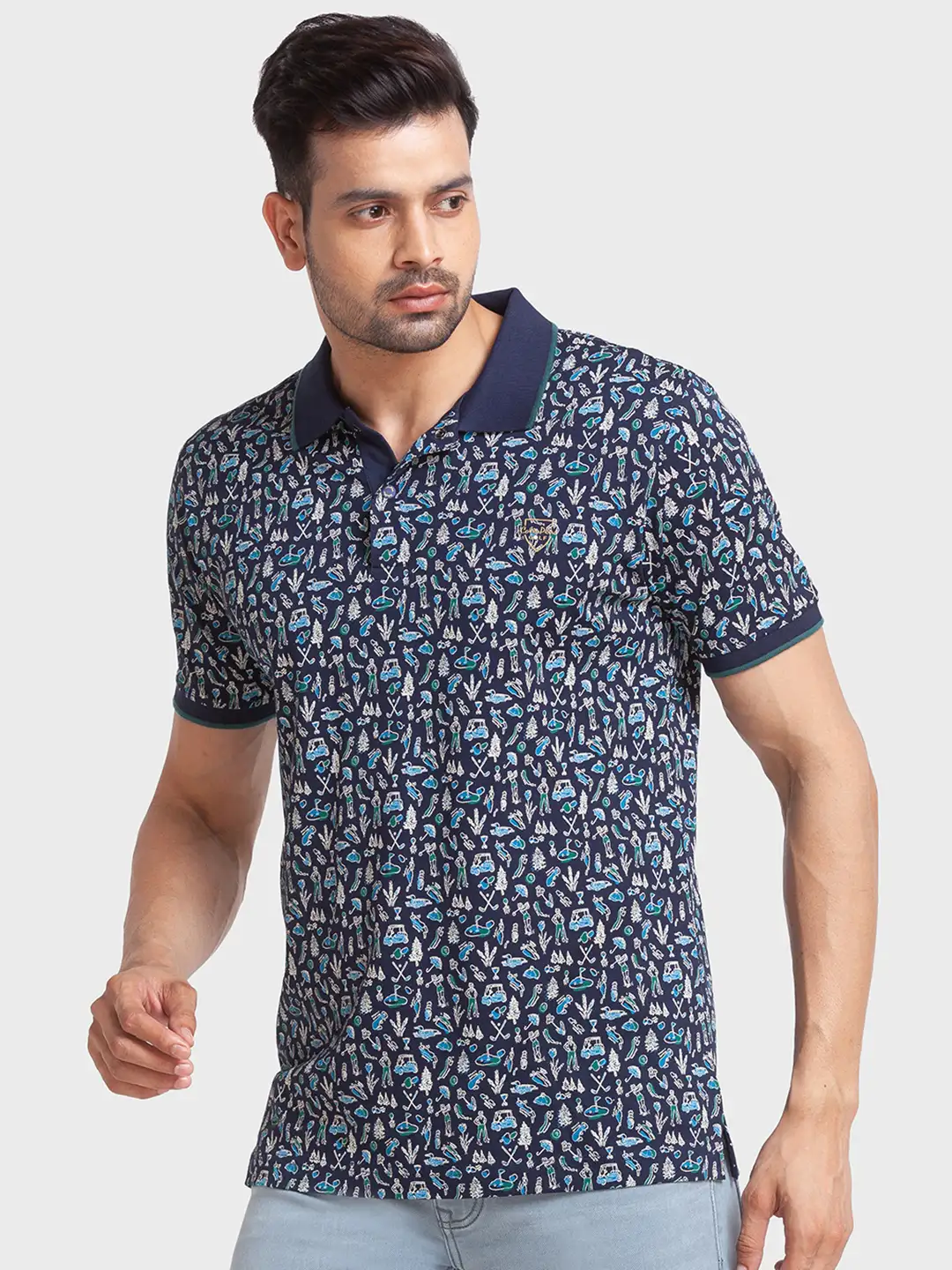 Men Navy Tailored Fit Print Cotton Half Sleeve T-Shirt