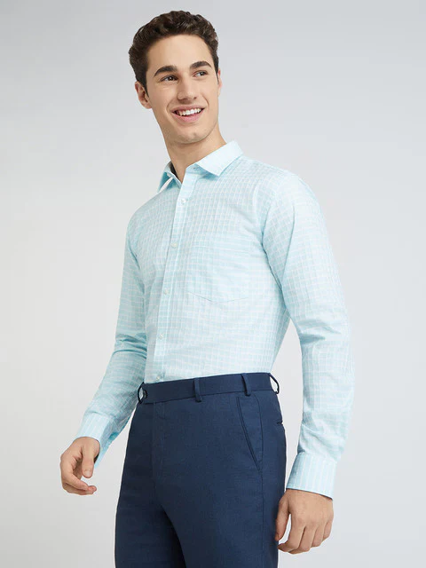 Men Blue Checks Slim Fit Cotton Formal Shirt