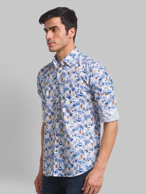 Parx Men Blue Print Slim Fit Cotton Full Sleeve Shirts