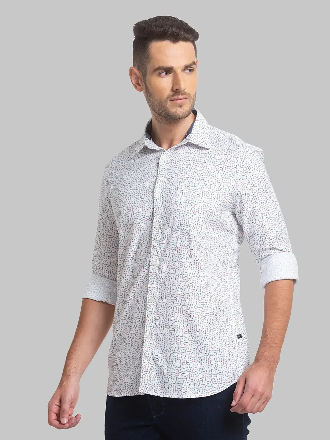 Parx Men White Printed Slim Fit Cotton Casual Shirt
