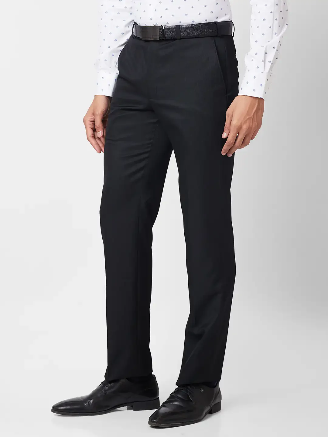 Park Avenue Men Black Stripe Smart Fit Polyester Blend Trouser