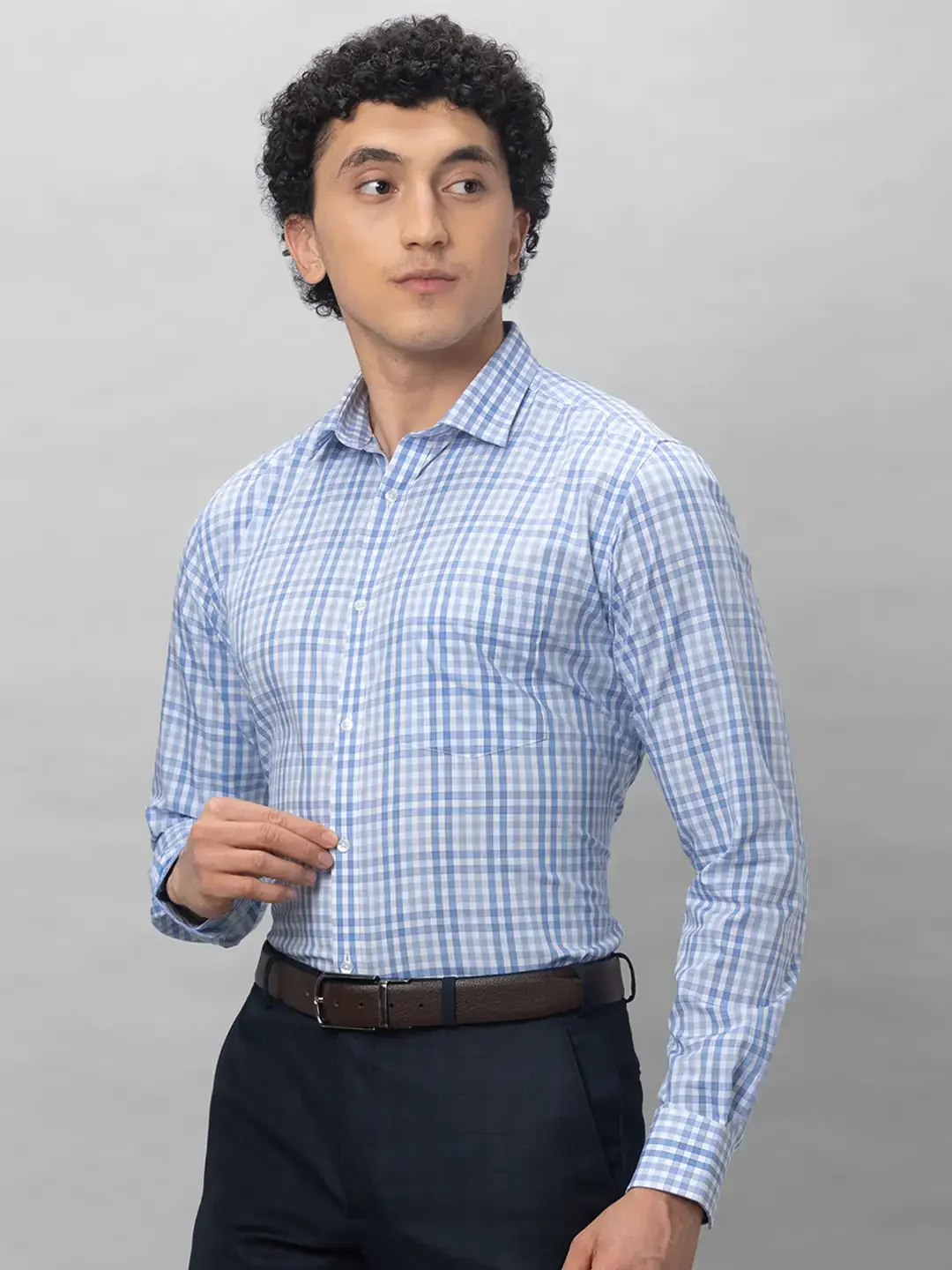 Park Avenue Men Blue Checks Slim Fit Cotton Shirts