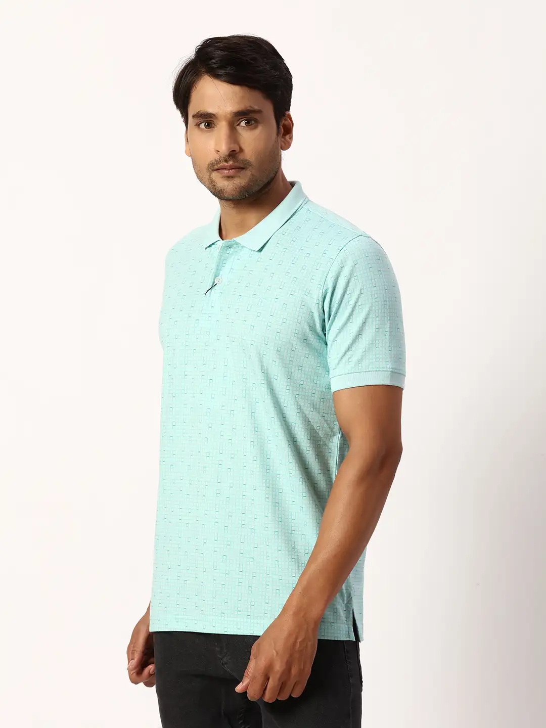 Park Avenue Men Blue Print Slim Fit Cotton Blend T-Shirt