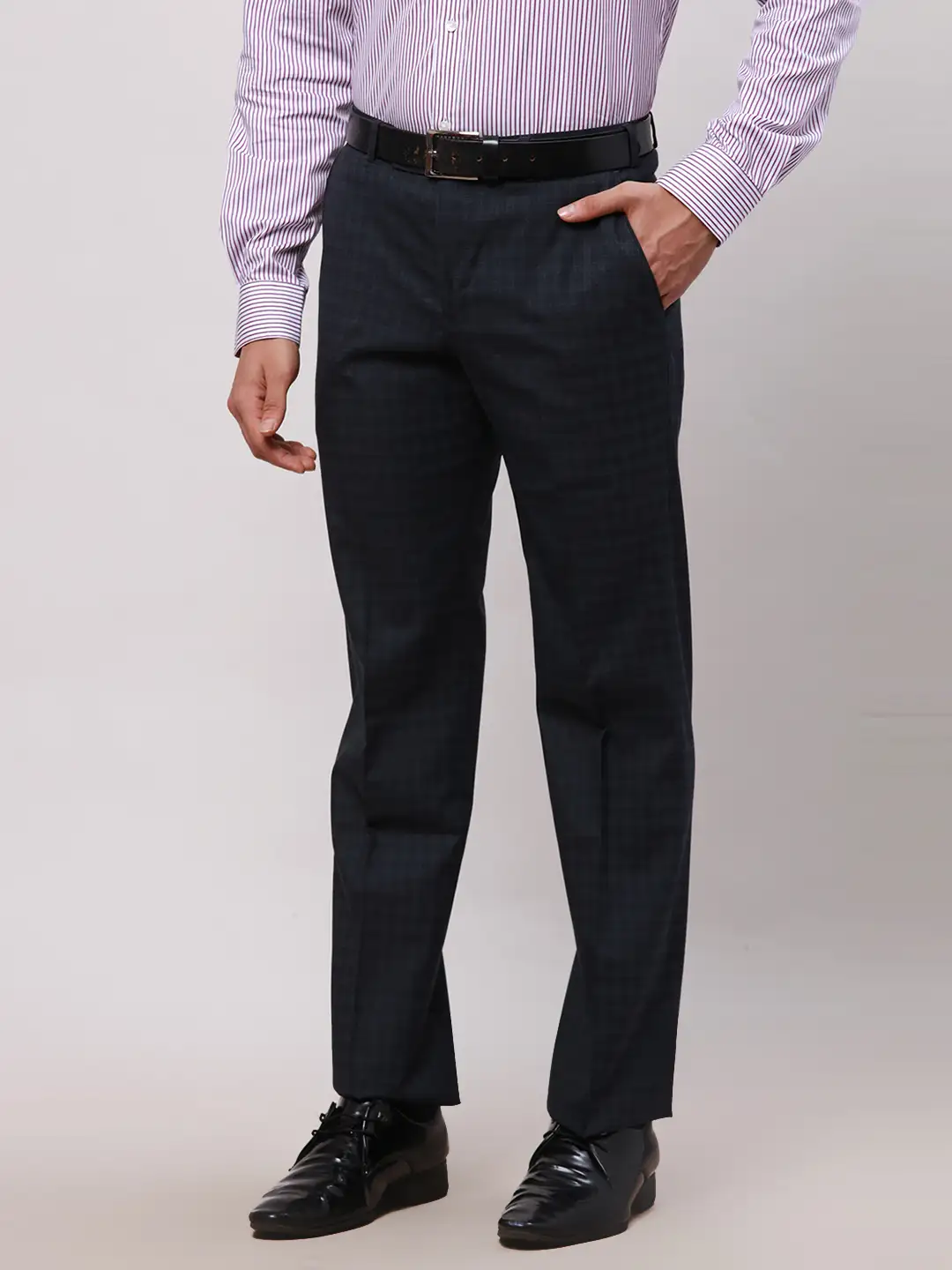 Elevate your everyday style with the Park Avenue Men Blue Smart Fit Checks Cotton Trousers. These trousers offer a smart fit that flatters your figure while keeping you comfortable all day long. The blue checks add a touch of refinement, making these trousers a versatile addition to your wardrobe. Whether you're heading to the office or a casual outing, these trousers ensure you look polished and stylish. Don’t miss out on these must-have blue check trousers—shop now!