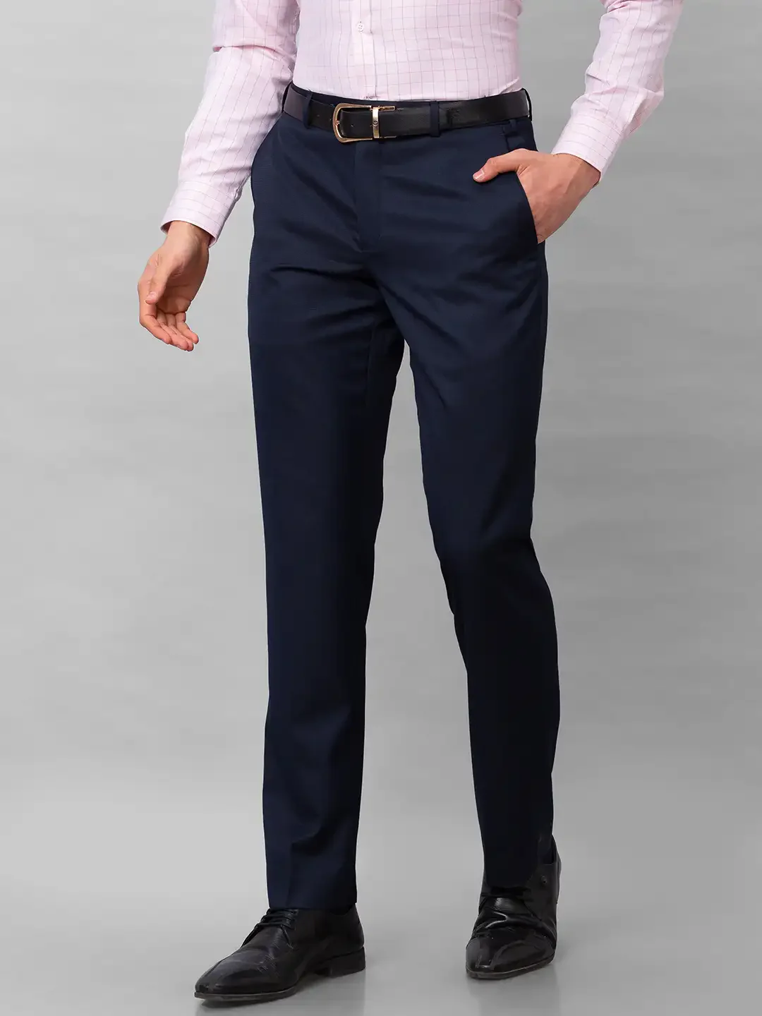 Park Avenue Men Blue Plain Smart Fit Polyester Blend Trousers