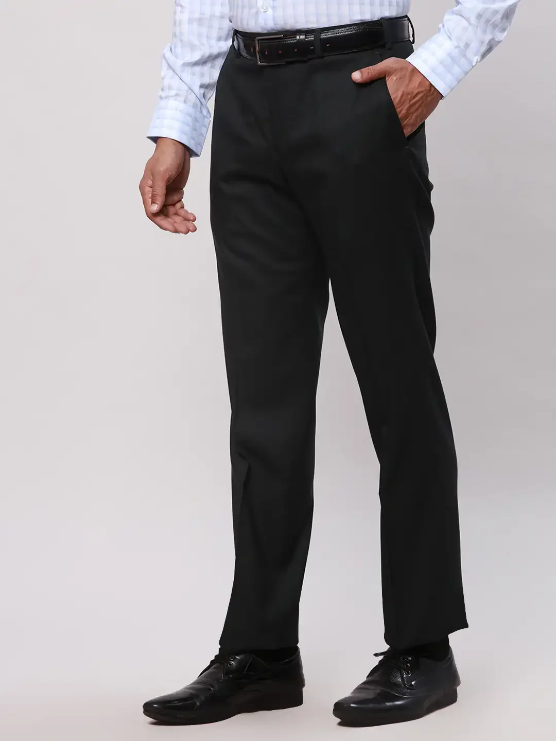 Park Avenue Men Green Structure Smart Fit Polyester Blend Trousers