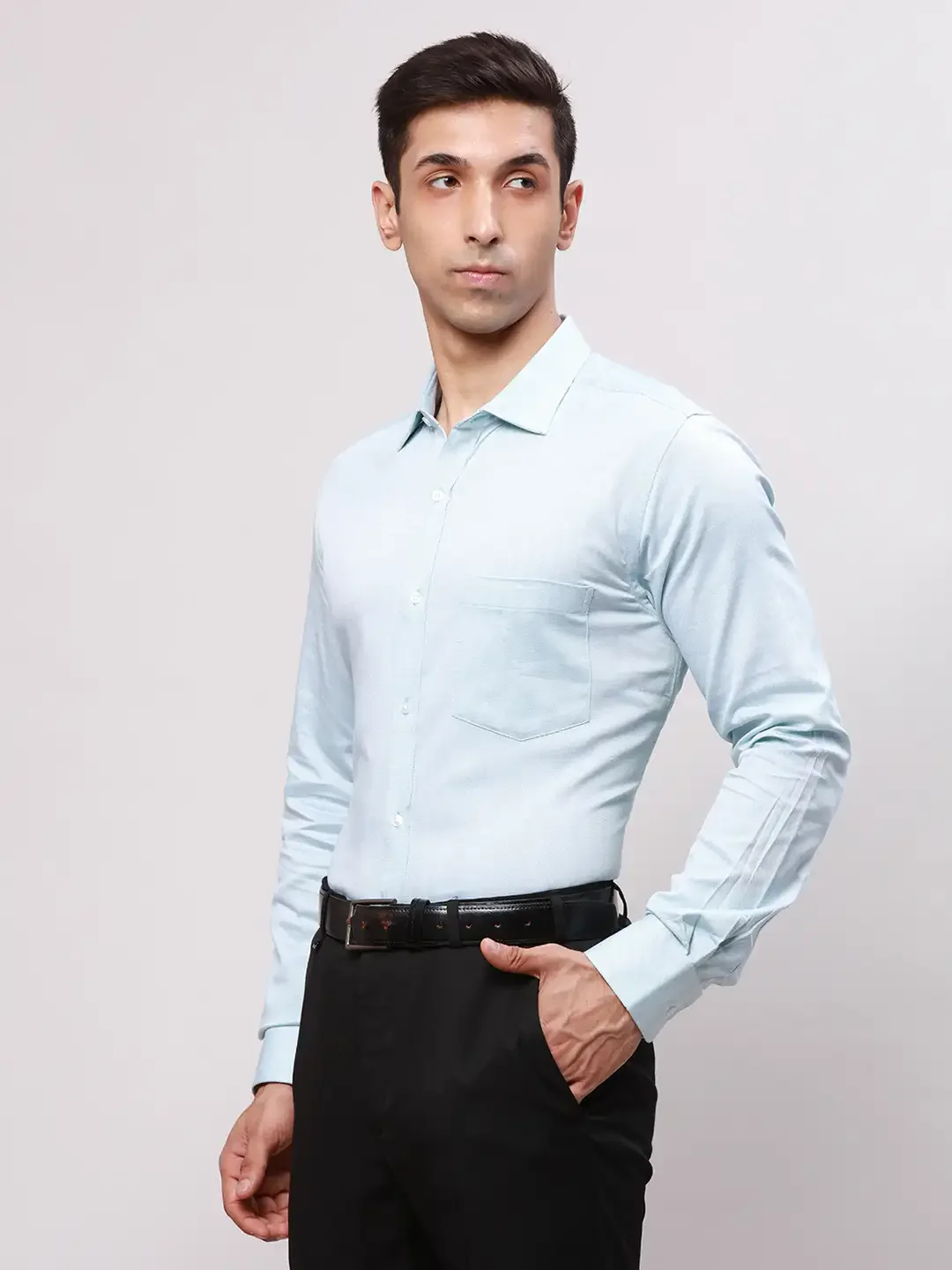 Park Avenue Men Green Slim Fit Self Design Cotton Full Sleeve Cut Away Shirt—