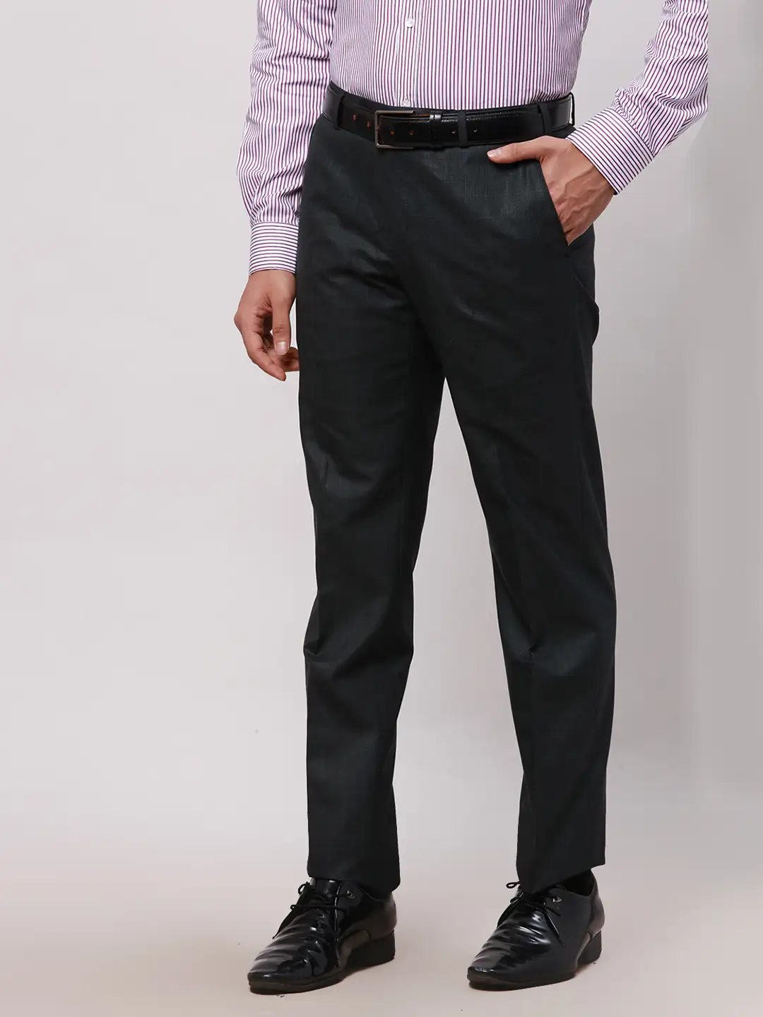 Park Avenue Men Green Smart Fit Structure Cotton Trousers