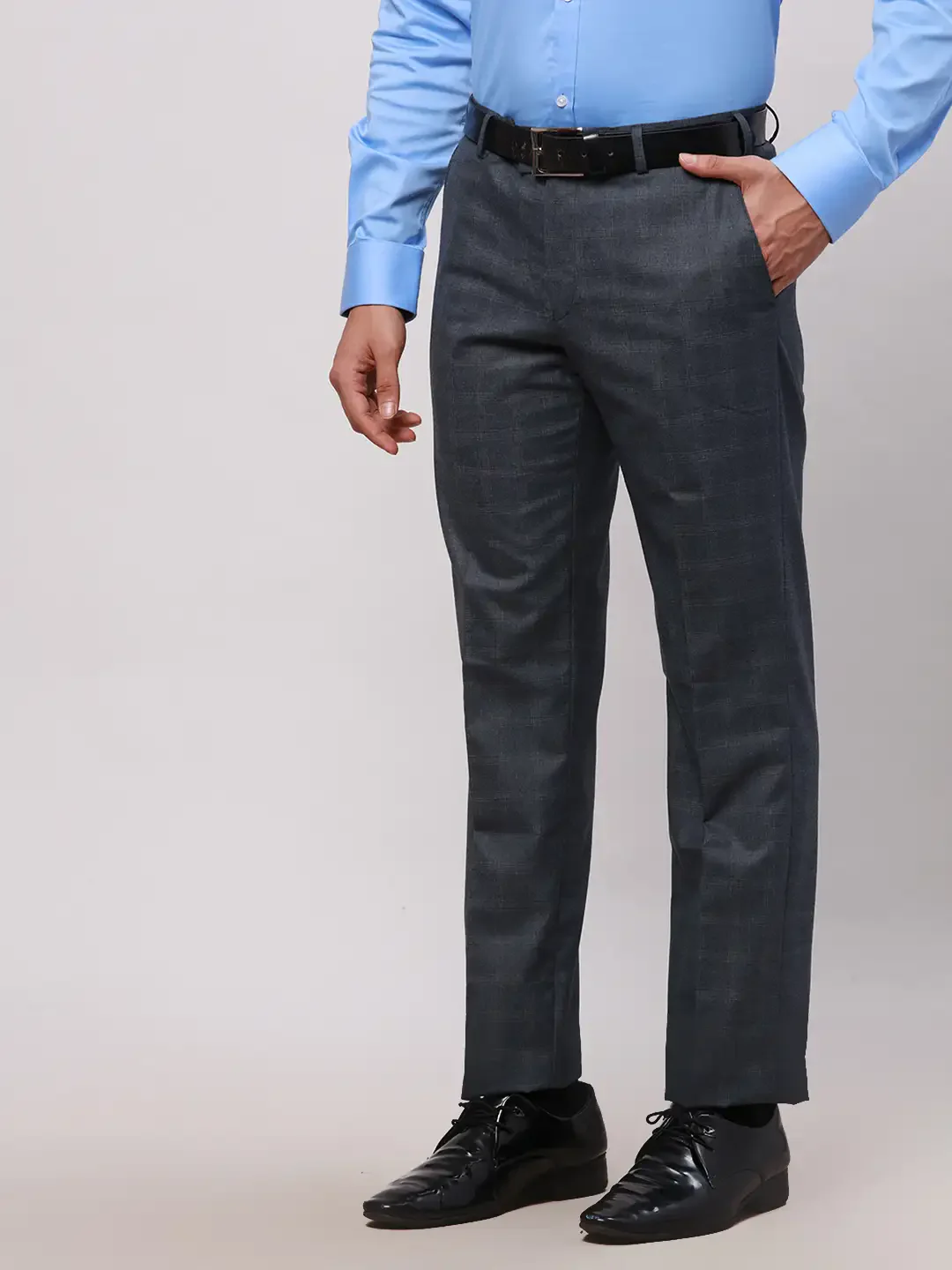 Park Avenue Men Grey Smart Fit Solid Cotton Trousers