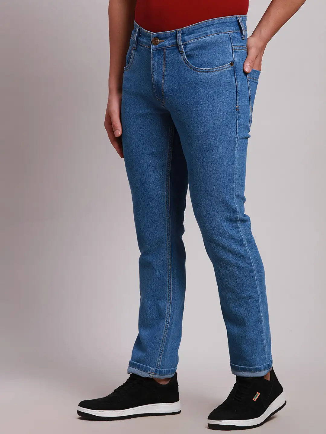 Parx Men Blue Twill Low Rise Tapered Fit Cotton Blend Jeans