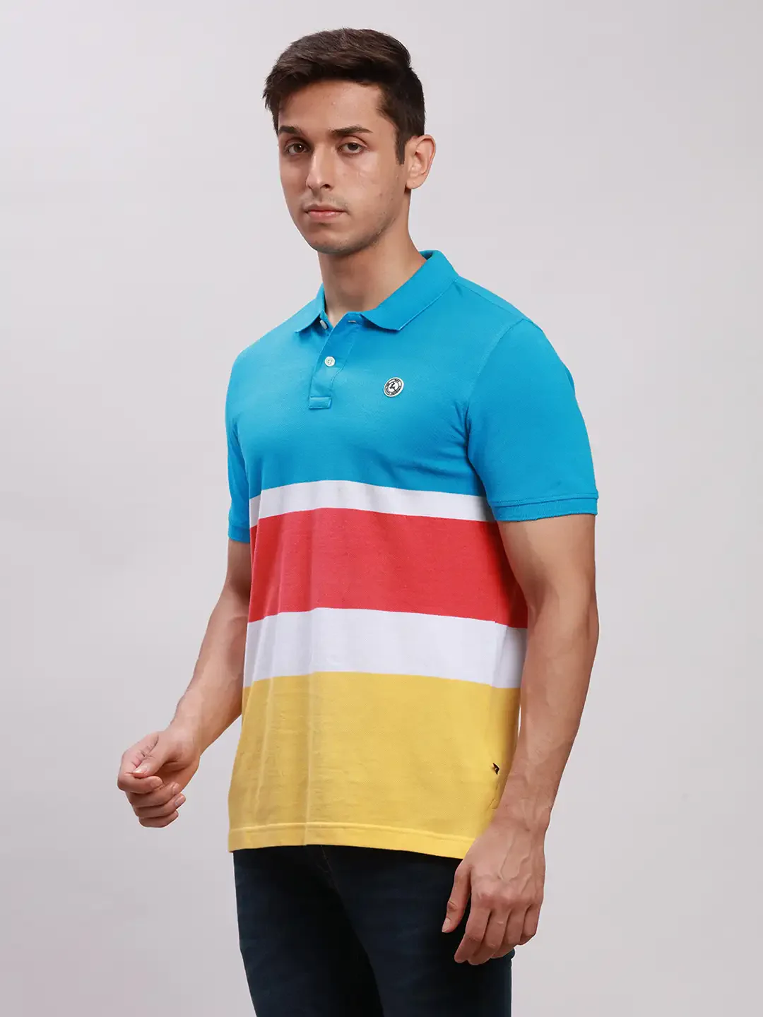 Men Blue Regular Fit Yarn Dyed Cotton Polo Neck Collar T-Shirt