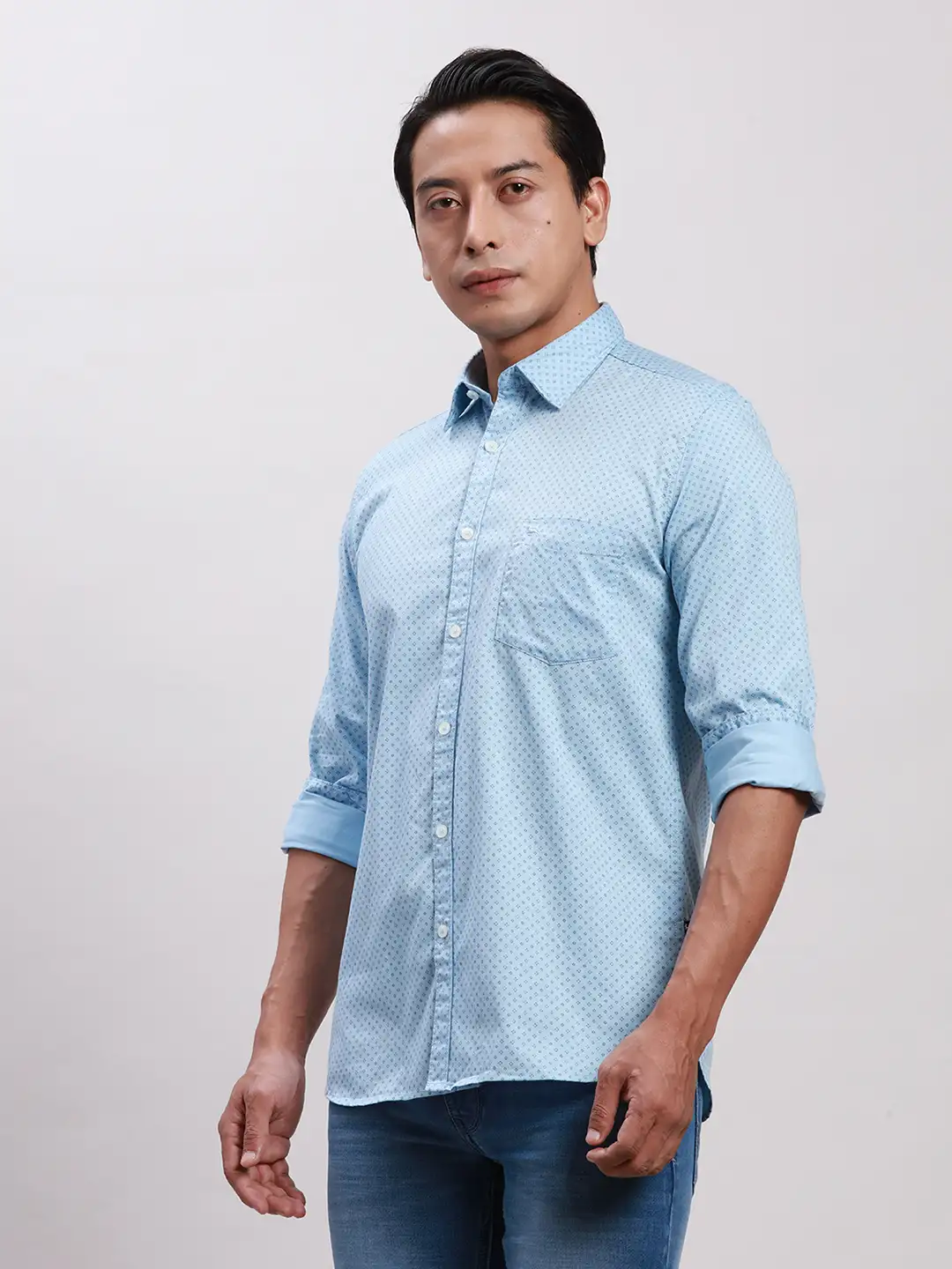 Men Blue Slim Fit Printed Cotton Full Sleeve Cut Away Shirt // Make a statement with the Parx Men Blue Slim Fit Printed Cotton Full Sleeve Cut Away Shirt. This shirt features a trendy print, perfect for casual outings or dressier occasions. Made from soft cotton, it ensures all-day comfort while looking stylish.