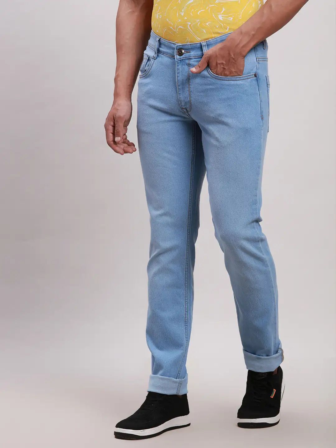 Parx Men Blue Twill Low Rise Tapered Fit Cotton Blend Jeans