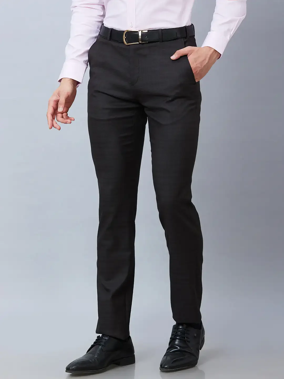 Raymond Men Brown Solid Slim Fit Polyester Blend Trousers